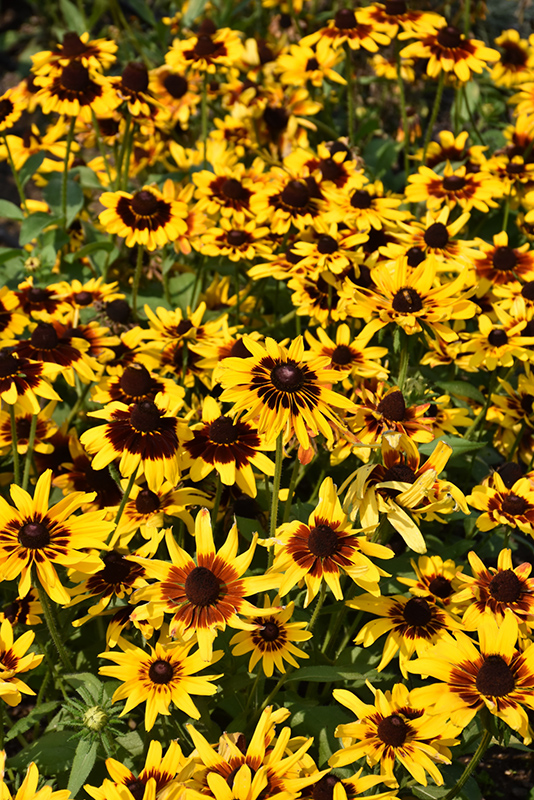 Denver Daisy Coneflower has masses of beautiful gold daisy flowers with dark brown eyes and a burgundy ring at the ends of the stems from mid summer to late fall, which are most effective when planted in groupings. The flowers are excellent for cutting. Its serrated pointy leaves remain green in color throughout the season.