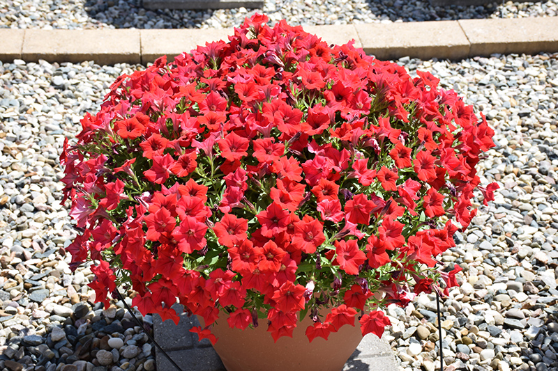 Surfinia® Deep Red Petunia is a fine choice for the garden, but it is also a good selection for planting in outdoor containers and hanging baskets. Because of its trailing habit of growth, it is ideally suited for use as a 'spiller' in the 'spiller-thriller-filler' container combination; plant it near the edges where it can spill gracefully over the pot. Note that when growing plants in outdoor containers and baskets, they may require more frequent waterings than they would in the yard or garden.