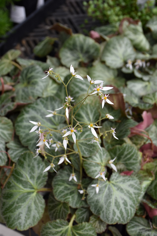 Creeping Saxifrage has masses of beautiful spikes of white star-shaped flowers with gold eyes and hot pink spots rising above the foliage from mid spring to early summer, which are most effective when planted in groupings. Its attractive serrated round leaves remain dark green in color with distinctive silver veins throughout the year.