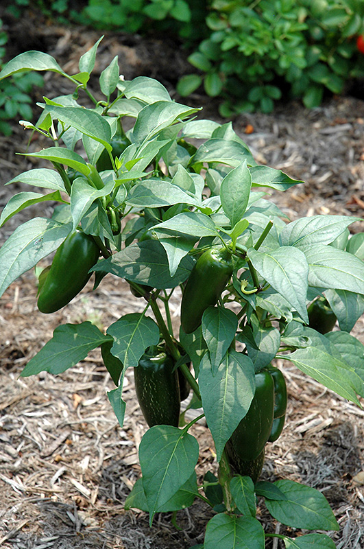 Jalapeno Pepper is a good choice for the vegetable garden, but it is also well-suited for use in outdoor containers and hanging baskets. With its upright habit of growth, it is best suited for use as a 'thriller' in the 'spiller-thriller-filler' container combination; plant it near the center of the pot, surrounded by smaller plants and those that spill over the edges. It is even sizeable enough that it can be grown alone in a suitable container. Note that when growing plants in outdoor containers and baskets, they may require more frequent waterings than they would in the yard or garden.