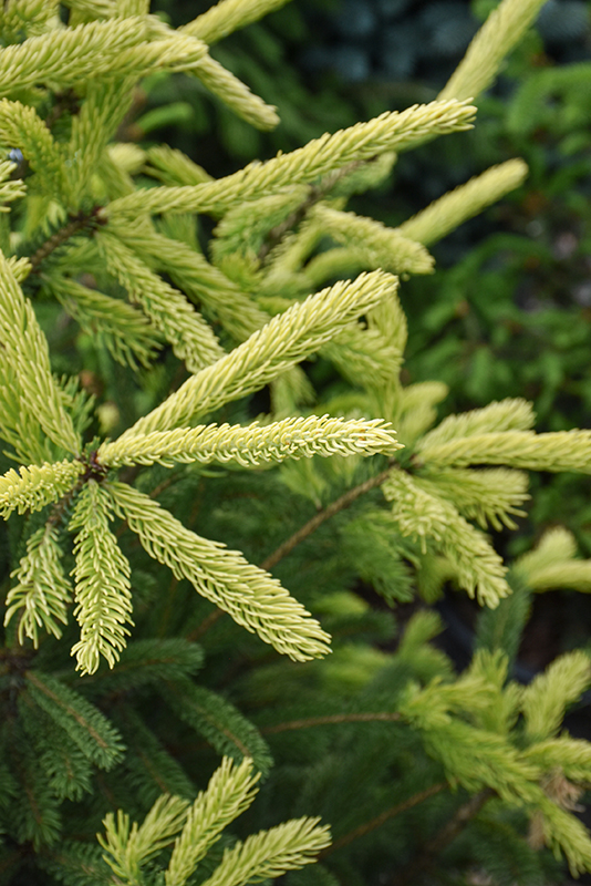 Mac's Golden White Spruce is a dwarf conifer which is primarily valued in the landscape or garden for its distinctively pyramidal habit of growth. It has attractive gold-variegated dark green foliage which emerges yellow in spring. The needles are highly ornamental and remain dark green throughout the winter. The brown fruits are held in cones from late summer to late fall.