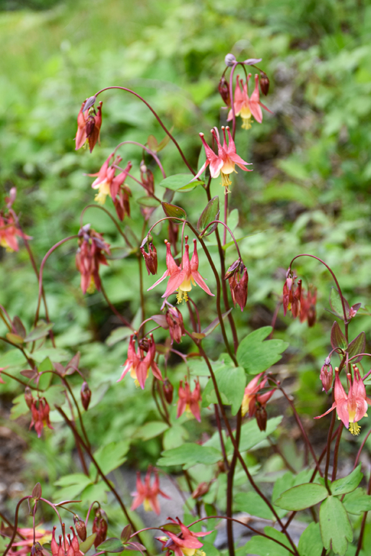 Columbine has masses of beautiful nodding tomato-orange bell-shaped flowers with yellow eyes and orange spurs at the ends of the stems in late spring, which are most effective when planted in groupings. The flowers are excellent for cutting. Its lobed compound leaves remain light green in color throughout the season.