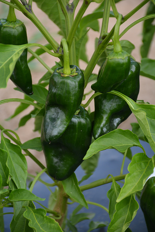 Poblano Pepper is a good choice for the vegetable garden, but it is also well-suited for use in outdoor pots and containers. With its upright habit of growth, it is best suited for use as a 'thriller' in the 'spiller-thriller-filler' container combination; plant it near the center of the pot, surrounded by smaller plants and those that spill over the edges. It is even sizeable enough that it can be grown alone in a suitable container. Note that when growing plants in outdoor containers and baskets, they may require more frequent waterings than they would in the yard or garden.