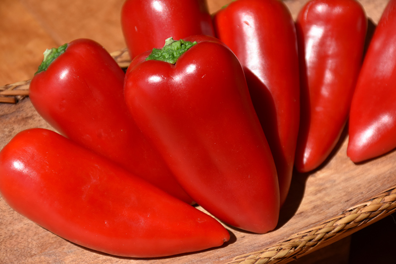 A high yielding variety that is superb in sunny containers and gardens; small cone shaped peppers with thick walls dangle below the stems; from cream to rose and finally red, these mildly hot peppers are great for sauces, salsas, roasting or grilling
