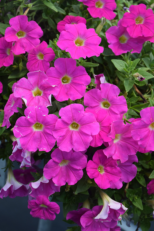 Capella™ Rose Petunia is draped in stunning rose trumpet-shaped flowers with yellow throats at the ends of the stems from mid spring to late summer. Its tomentose pointy leaves remain green in color throughout the season.
