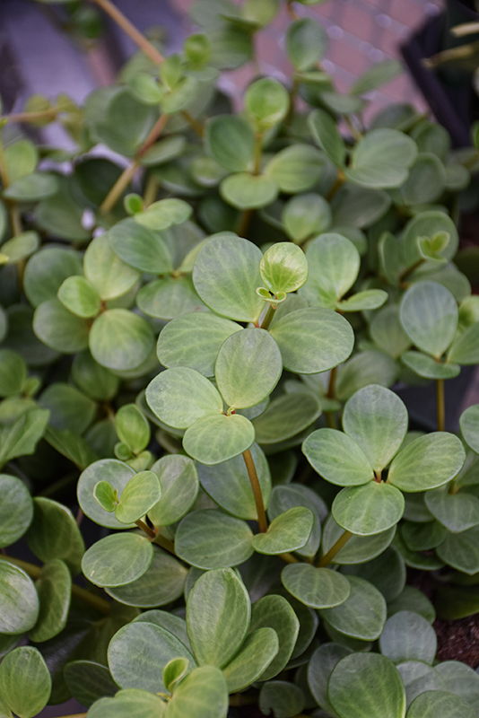 Hope Peperomia's attractive small glossy round leaves emerge chartreuse, turning dark green in color with distinctive light green veins throughout the year on a plant with a trailing habit of growth. The coral-pink stems can be quite attractive and add to the plant's interest.