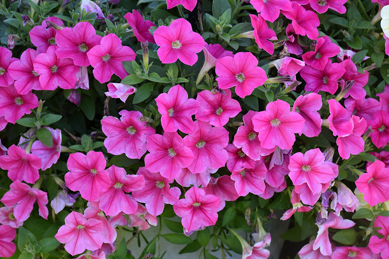 Headliner™ Lipstick Petunia is bathed in stunning pink trumpet-shaped flowers with hot pink centers at the ends of the stems from mid spring to early fall. Its pointy leaves remain green in color throughout the season.