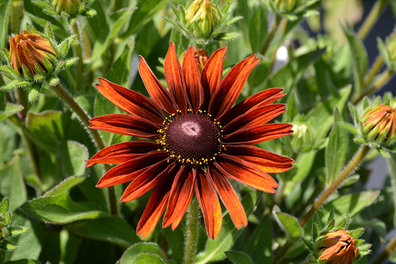 Large, long lasting blooms rise above medium green foliage on this upright-mounded variety; interesting deep copper orange blooms with burgundy-brown centers; a bee friendly addition to containers, beds and garden landscapes; deadhead as necessary