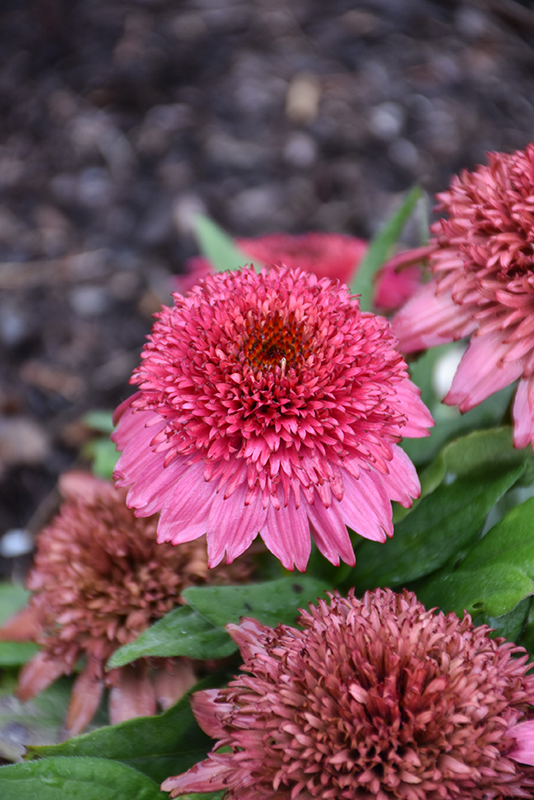 Giddy Pink Coneflower has masses of beautiful lightly-scented double hot pink daisy flowers with coral-pink overtones and dark brown eyes at the ends of the stems from early summer to mid fall, which are most effective when planted in groupings. The flowers are excellent for cutting. Its pointy leaves remain forest green in color throughout the season.
