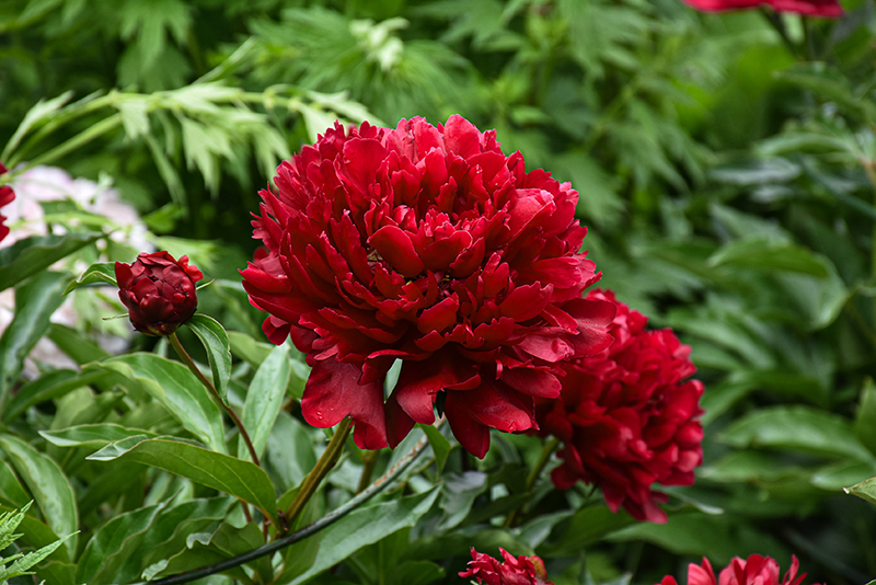 Command Performance Peony features bold lightly-scented double cherry red flowers with pink overtones at the ends of the stems from late spring to early summer. The flowers are excellent for cutting. Its compound leaves remain green in color throughout the season.